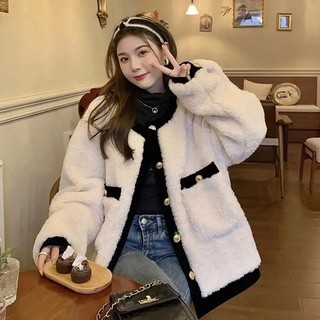 Áo khoác lông cừu tay dài dáng rộng thời trang mùa đông cho nữ