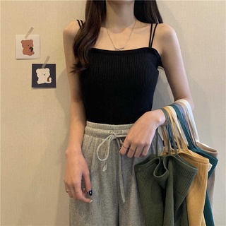 Áo Hai Dây Dệt Kim Màu Sắc Đơn Giản Phong Cách Retro Cho Nữ