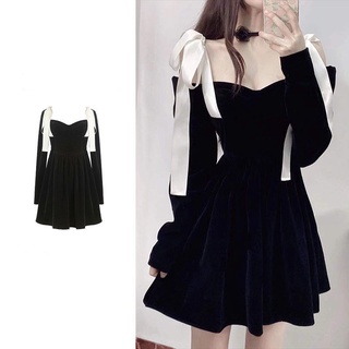 Đầm Nhung Phối Nơ Xinh Xắn Theo Phong Cách Mùa Thu Pháp Dành Cho Nữ