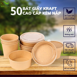 Combo 50 Tô Giấy, Bát Giấy Kraft Chịu Nhiệt Có Nắp Bằng - An Toàn Môi Trường