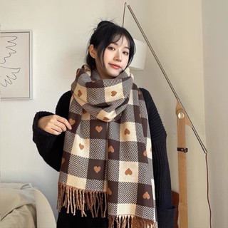 Khăn quàng cổ Cashmere nữ kẻ cao cấp họa tiết trái tim giữ ấm mùa đông siêu mềm mịn có 2 màu đen và màu nâu KL17