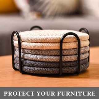 Set 6 Đế Lót Ly Thấm Hút Tốt Kèm Giá Đỡ Tiện Dụng Chất Lượng Cao
