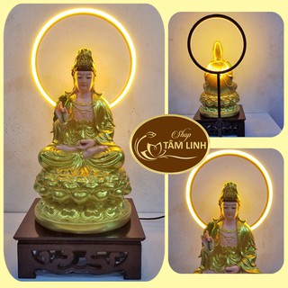 Combo Tượng Quan Âm cao 30 cm+Hào Quang Led cao 45 cm + Đôn gỗ vuông 20 Mẫu Kệ Đèn Đẹp GIÁ SIÊU RẺ