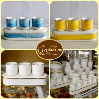 Án ba-Bộ ba ly nước thờ cúng bàn thờ GỐM SỨ CAO CẤP