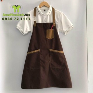 Tạp dề phục vụ màu nâu cafe Tạp dề trơn Tạp dề nhân viên nam nữ Mẫu tạp dề ngắn đẹp