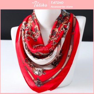 Khăn Lụa Vuông Turban Cao Cấp Họa Tiết Hình Học Hoa Làm Áo Quàng Cổ - Chất Liệu Silk - 90x90cm - Tatiho - Mã KL054
