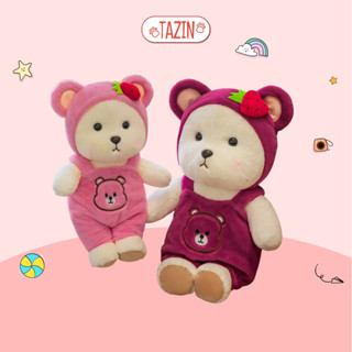 Gấu Bông Lena Đội Mũ Đeo Yếm Cosplay Gấu Dâu Lotso, Stitch, Pikachu Dễ Thương Quần Áo Có Thể Tháo Dời Tazin