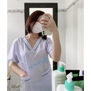 [Yêu thích+] Bộ quần áo Blouse điều dưỡng nam nữ có viền xanh cho thực tập sinh - áo điều dưỡng, y tá có cầu vai xanh