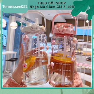 Bình nước thể thao bằng nhựa PC PP có ống hút trong suốt dễ thương 1.5L-2L