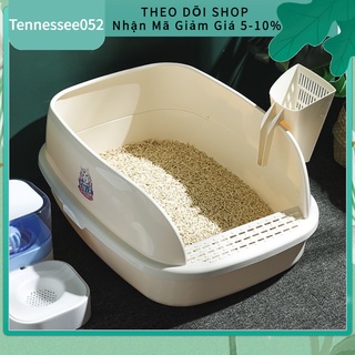 Khay vệ sinh cho mèo chậu thành cao chống văng cát nửa kín có dung tích lớn ngăn chặn rò rỉ cát với xẻng màu trắng sữa