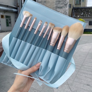 bộ cọ trang điểm 10 cây cao cấp lông siêu mịn kèm bao da màu xanh