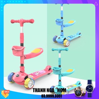 (TẶNG CHUÔNG XE) Xe Trượt Scooter Cho Bé, Xe Scooter Bánh Có Đèn, Có Nhạc, có ghế 3 iin 1 THANH NGA ĐỒ CHƠI AN TOÀN