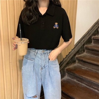 Áo Polo Trơn % Hình thật B'teen phối cổ Unisex tay lỡ