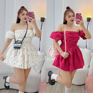 Đầm Babe trễ vai tay phồng dáng ngắn- KHOSIBOHOME