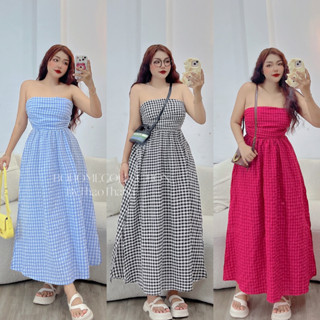 Đầm cúp ngực caro dáng dài - KHOSIBOHOME