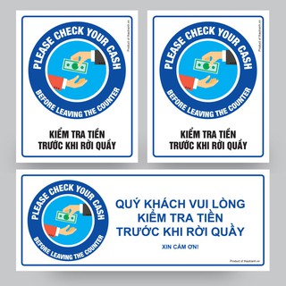 Biển Kiểm Tra Tiền Trước Khi Rời Khỏi Quầy Dành Cho Cửa hàng - Tem Cảnh Báo - Decal Cảnh Báo - Sticker Trang Trí
