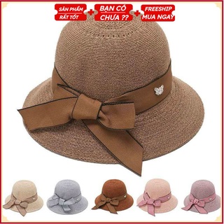 Mũ cói tiểu thư đi biển thắt nơ