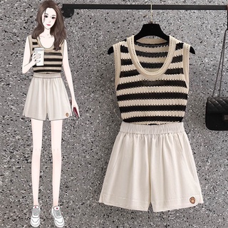 set áo 2 dây len kèm áo khoác ngoài dễ thương họa tiết kẻ sọc