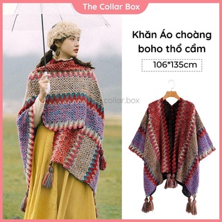 Khăn áo choàng boho thổ cẩm nữ thu đông Áo choàng len dạ dày poncho khoác ngoài - ACTH The Collar Box