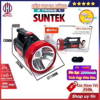 Đèn pin đa năng 2 trong 1 Suntek KM-2661N H2Pro siêu sáng 10+2W, pin sạc 2000mah(1 chiếc), đèn pin tích hợp đèn bàn