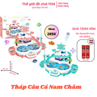 Đồ chơi câu cá tháp nam châm cho bé, có đường ray cá biết bay, pin sạc, Thegioidochoi1104