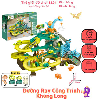 Bộ Đường đua khủng long kết hợp công trình xây dựng kèm 4 xe 2 khủng long có nhạc