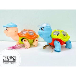 [HOT- CHẠY BẰNG PIN] Đồ chơi rùa chạy có đèn và nhạc loại lớn và có dây cho bé dắt đi dạo quanh nhà rất đáng yêu