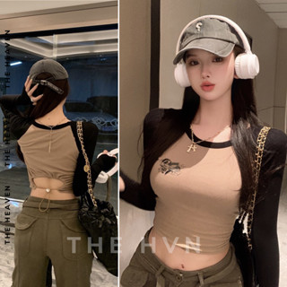 Áo Thun Form Fit Tay Dài Baby Tee Phối Tay Be Đen Chất Nhung Tăm Retro 𝒃𝒚 𝑯𝑽𝑵