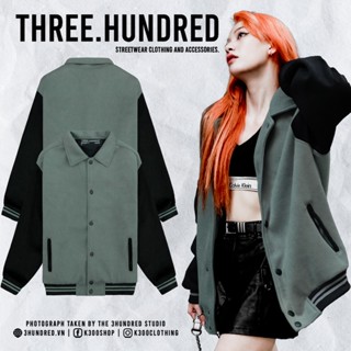 Áo Khoác Varsity Jacket Chất Liệu Dạ Dày Dặn Cổ Bẻ Form Rộng Thoải Mái Unisex Màu Xanh Phối Tay Đen