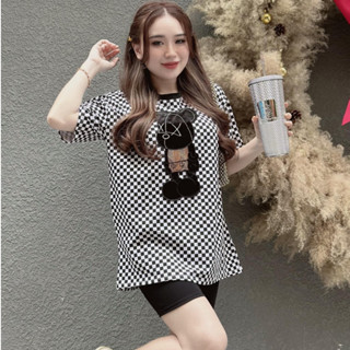 Áo thun Bigsize kẻ caro Gấu nhung Đen (60-90Kg) MN24