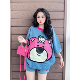 Set Jeans nữ Bigsize Gấu Dâu Viền Hồng Dễ Thương (60-88Kg)