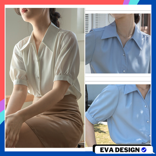 Áo sơ mi nữ cộc tay chất liệu lụa thoáng mát áo sơ mi nữ tay phồng tiểu thư có khuy đính ngọc thanh lịch