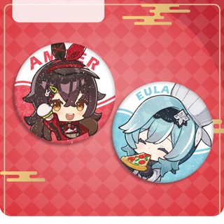 Huy hiệu in hình AMBER X EULA Genshin Impact ver Pizza Hut acrylic standee game mica chibi trang trí trưng bày