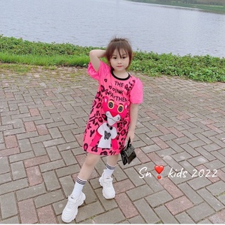 Váy size đại, Váy Suông Hoạt Hình Pink Panther Tay Bồng Siêu Hot Cho Bé Gái (25-25kg)