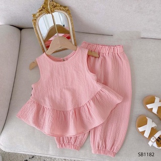 Set Bộ Bé Gái Áo Thô Mềm Hoạ Tiết Phối Nơ + Quần Umi Mềm Mát(8-20kg)