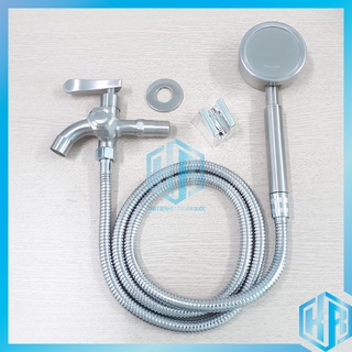 Bộ vòi xịt vệ sinh tăng áp Tay gạt trước cùng van chia 2 đường nước bằng Inox 304 Mạ sơn tĩnh điện cao cấp - Đủ bộ