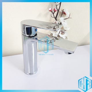 Vòi Bồn Rửa Mặt, Lavabo Nóng Lạnh Inox 304 Thân Trụ Cần Gạt Bằng 18cm Mạ Màu Bạc Với Lõi Đồng Cao Cấp