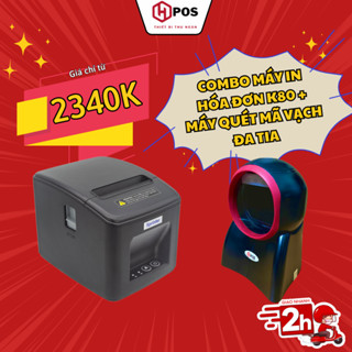 Combo máy in hóa đơn + máy quét đa tia dành cho siêu thị, tạp hóa, mỹ phẩm, thời trang