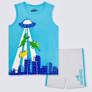 Bộ thun sát nách bé trai thêu cá heo quần sọc nhỏ và đại