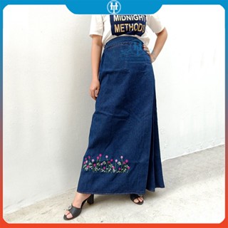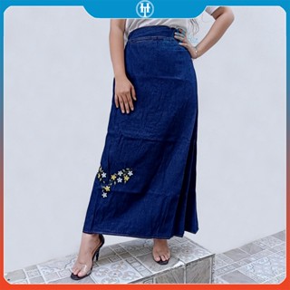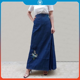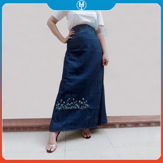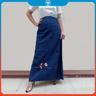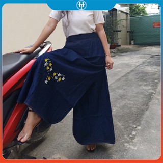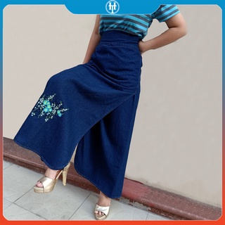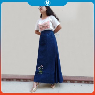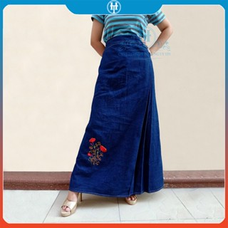 Váy Chống Nắng Dài Dạng Xòe Cho Nữ Vải Jean Cotton Dày Mềm Có Nút Bấm Chắc Chắn Thêu Bông Lúa H&T Fashion