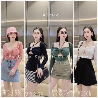 Sét bộ áo 2 dây cổ U trơn phối chân váy chữ A chứ hiệu toàn váy đì o cực xinh