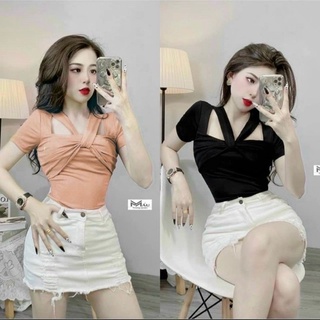 Áo kiểu croptop khoét vai lêch vai cực xinh , chất thun gân mềm mịn mát