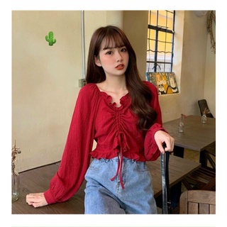 áo kiểu bèo bèo phối dây rút ngực xinh tay phồng nhẹ pc