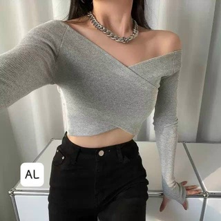 Áo kiểu tay dài cổ yếm khoen bên tà nhọn chéo cực hot , chất thun gân dày dặn