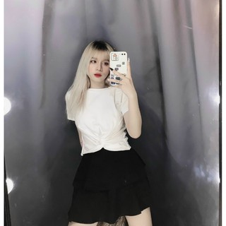Áo xoắn eo croptop tay ngắn các màu hot lạ mắt mix đồ xinh xắn