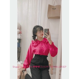 áo sơ mi cổ sen phối bèo to tay dài nhúm cổ tay xinh u