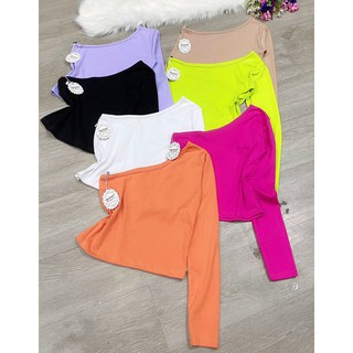 áo croptop lệch 1 bên vai xinh tay dài hot, tôn dáng đủ màu hình thật