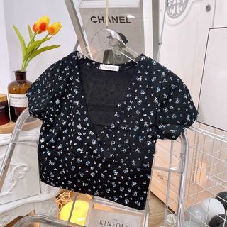 áo croptop in hoa nhí đắp chéo na
