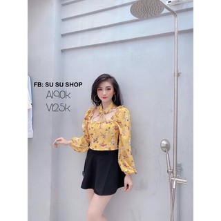 áo kiểu bèo tay tay phồng xinh chất kate mềm