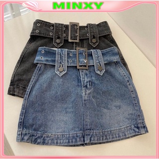 Chân váy jean chữ A kèm đai cá tính chất đẹp,đủ size S.M.L 2 màu-Minxy shop